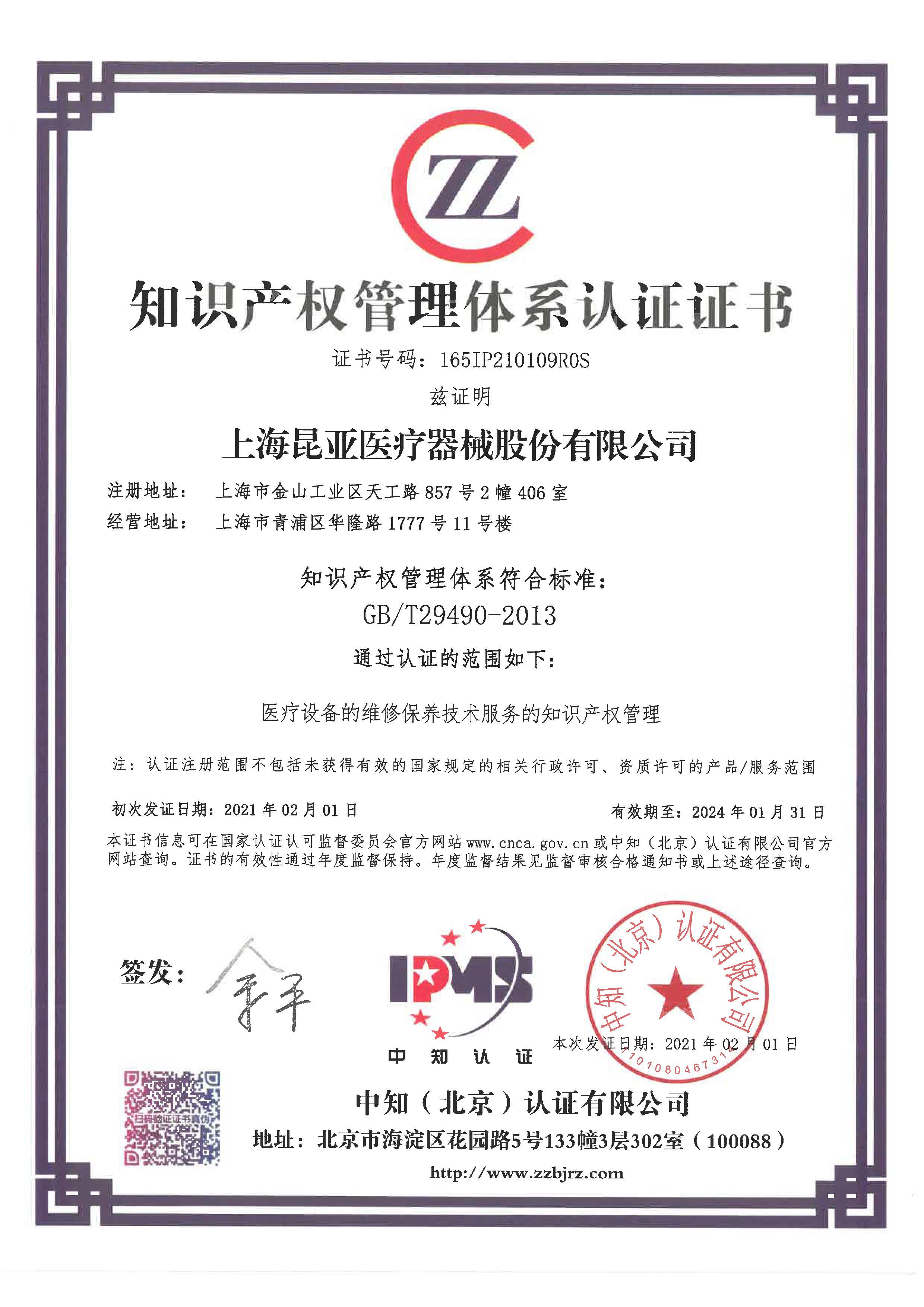 上海昆亞醫療器械股份有限公司是一家醫療設備服務平臺提供商,公司主營業務為醫院醫療設備整體提供維保外包服務,致力于全院醫療設備預防性全生命周期管理;以全面提升醫院醫療設備管理水平、臨床醫療設備使用率和開機率打造的專業化醫療設備服務平臺。 昆亞醫療,已通過ISO14001環境管理體系、ISO45001職業健康與安全管理體系、ISO9001質量管理體系、ISO13485醫療器械質量管理體系、ISO27001信息安全管理體系五大國際認證;同時,昆亞醫療為合作客戶提供設備服務保險;2017年,昆亞醫療榮獲得上海市高新技術企業稱號,并獲得上海市經信委工業互聯網創新發展專項資金支持;2019年,昆亞醫療榮獲兩化融合管理體系評定證書;2021 年,榮獲“張江之星”企業稱號、榮獲中國設備管理協會醫療行業分會廣東省培訓基地,通過企業標準管理體系認證、企業誠信管理體系認證;2022 年,昆亞醫療榮獲上海市“專精特新”企業稱號,通合規管理體系認證、反賄賂管理體系認證。。